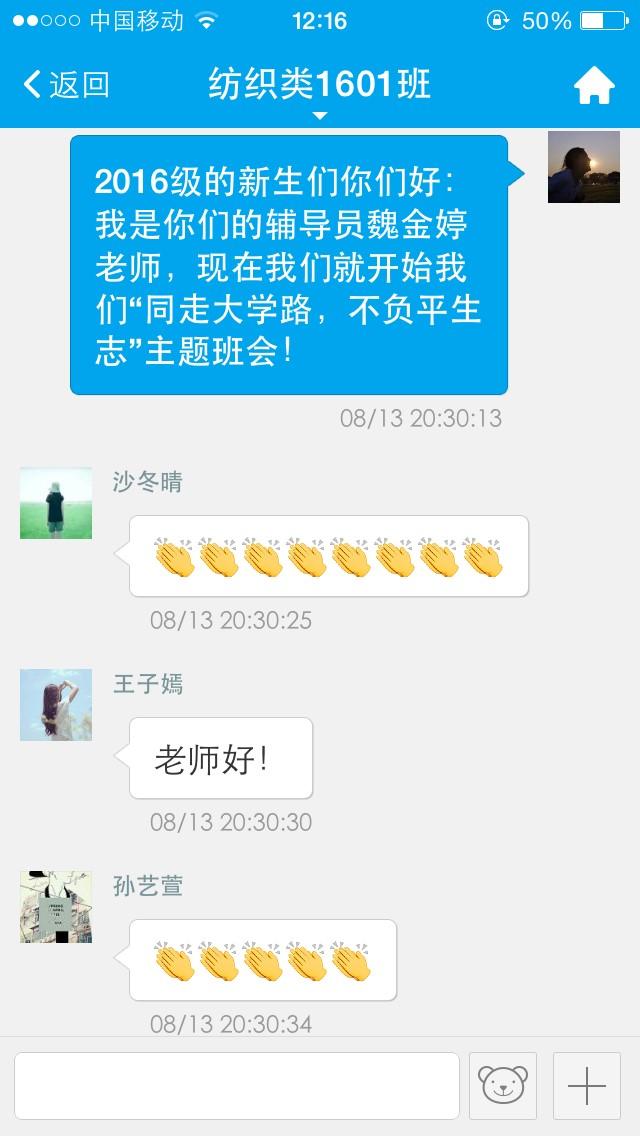 “考入东华一直是我的梦想,我很荣幸能够成为一名东华人,期待与35个来自天南海北的同学一起在东华实现自己的人生理想!”“大学是一个充满爱的地方,学习知识、锻炼能力固然重要,但如果想成为更好的自己,就要学会关怀和爱,真心地去体会师生情和同学情。”纺织学院的新生“班”里,线上班会课开得如火如荼,辅导员魏金婷以“同走大学路,不负平生志”为班会主题,让新生们畅所欲言,相互交流对大学生活的憧憬与向往。同学们有的谈自己的职业理想,表示大学四年要努力为梦想而奋斗;有的则积极建言献策,对班级日后的管理工作提出了建议。