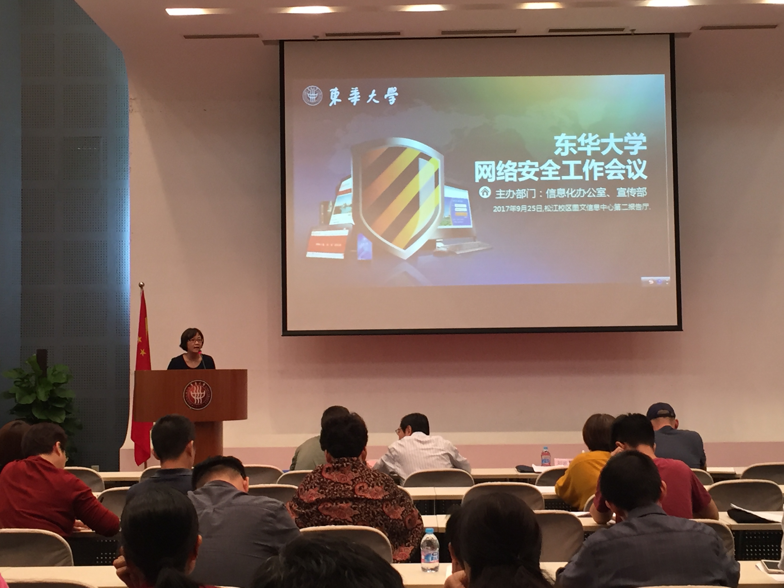 9月25日,我校2017年网络安全工作会议在松江校区召开。会议进一步宣传解读了《中华人民共和国网络安全法》,对做好网络信息安全工作进行部署。校党委副书记刘淑慧出席会议并讲话,会议由信息化领导小组组长、副校长邱高主持,各二级单位主要负责人、网管员、信息员、信息系统(网站)责任人等出席会议。