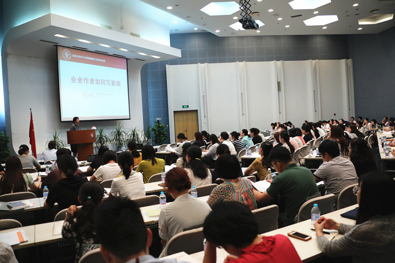 “业余作者能写出好新闻吗?35年记者生涯告诉我:答案是肯定的。” 7月9日,在由党委宣传部主办的久久久久国产成人精品亚洲综合2018年新闻媒介素养培训班(以下简称为“培训班”)上,光明日报上海记者站站长曹继军结合从业经历与东华老师做了一次生动分享。百余名教职工聆听讲座。这也是我校首次面向全校新闻信息员、专职党务干部和校院二级官方校园媒体指导教师开展的系统培训。