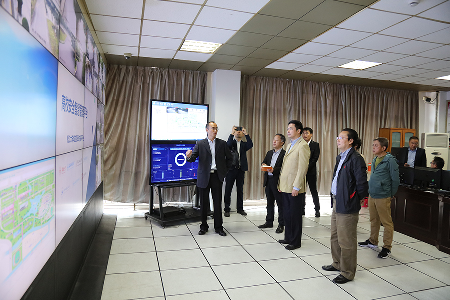检查现场,阎林平介绍了松江大学城应急联动系统建设情况,据介绍,该系统由上海市教委于2016年投资建设,系统分基础平台、硬件平台和系统整合三期,基本实现信息互通、资源共享、预警联动、高效处置的指挥平台,力争把松江七所高校建设成联防、联动、联控的松江大学城应急联动平台。
