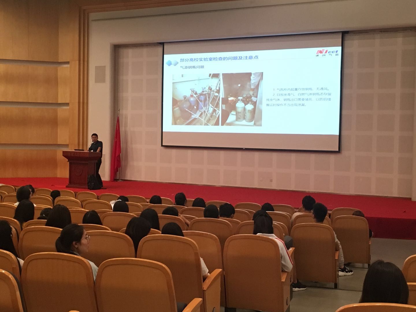 学校邀请拥有十多年实验室集中供气行业经验、参编过《实验室建设与改造指南》的南京诚创科技系统有限公司陈建锋,从实验室气体理论知识、气路设计、部分高校实验室检查的问题及注意点、成功案例等方面,理论联系实际详细分析了当前高校实验室气体安全管理应关注要点,给出了保障实验室的安全供气的解决方案,并在现场为如何有效做好气体的安全使用和管理工作答疑解惑,参会师生收益颇丰。