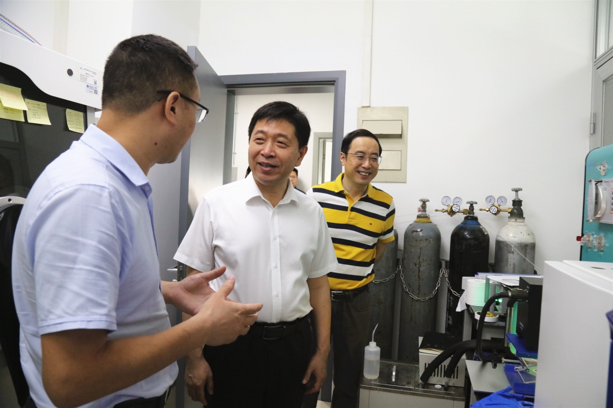 俞建勇一行对教学楼、食堂、材料学院进行了实地检查。在教学楼,俞建勇仔细询问教学软硬件设施能否满足师生上课需求,叮嘱教学要充分利用各种技术服务手段,不断优化师生学习环境。在食堂,俞建勇了解了特色餐饮新开设情况,强调食品卫生安全,兼顾大众口味的多样化。在材料学院,俞建勇一行来到教授办公室、院办、实验室,查看了纤维材料改性国家重点实验室新建的纤维生物材料表征及微纳器件制备超净室,强调要进一步瞄准国家重点领域和重大需求,加强科研平台建设。