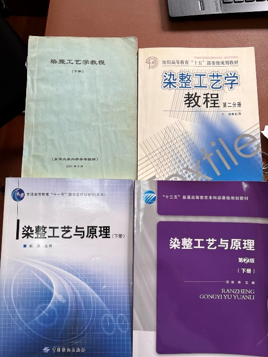 “编写教材与写论文不同,多一字少一字都不行,每一句话、每一处安排都应经得起推敲和验证。”赵涛是图书馆的常客,那个年代,查阅文献不像现在这样方便,为了掌握国内外最新理论和技术,图书馆有关化学与染整工程类的书籍、期刊基本上都被他翻阅过,有用的资料都被他复印过,赵老师办公室立柜下方曾塞满厚厚的文献和笔记,见证着他对教材编写的浓厚兴趣和全身心的积累与思考。秉持着“教材中每一句话都应该是经典”的坚守与执着,十年来,他组织召开多次教材工作会议和访谈,对纺织类院校师生的使用情况包括教学效果、教学适应性、先进性、系统性以及编校质量等进行不间断跟踪及调研,力争合理编排篇章结构,反映国内外最新染色印花理论和工艺技术,并突出清洁生产和绿色纺织品的概念。赵涛主编的《染整工艺学教程》在2005年入选纺织高等教育“十五”部委级规划教材。2009年《染整工艺与原理(第一版)下册》出版发行,历经2版,重印4次。最新的资料数据分析,大量的实验比对,悉心的教学研究,数十年磨一剑,最终,《染整工艺与原理(第二版)下册》荣获首届全国教材二等奖。他说:“每个人沉下心来,为学校做好一件事就够了。”