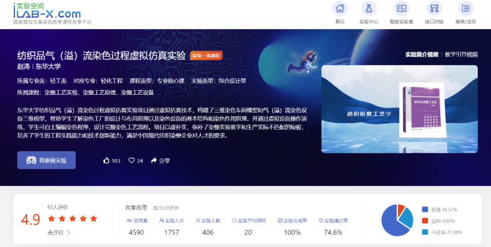 “现在上海可供学生实习实践的印染厂并不多,实验室受条件限制,缺乏最新或大型设备。”为了让学生掌握实际生产的染整工艺流程,赵老师在国家虚拟仿真实验教学课程共享平台上线了相关课程,通过联系设备公司、印染厂和软件公司,将实验室没有的大设备、最新工艺等搬进虚拟仿真实验,构建染色设备三维模型,学生通过组合设备、选择染色工艺,身临其境一站式学习体验染色工厂生产及染色设备的工作原理,自主编辑染色程序,设计完整染色工艺。赵涛认为,“教材是人才培养的钥匙,好教材能有效激发学生的科学思维与学习潜能。”十四五期间,他将结合当代学生的特点以及最新应用技术和研究成果,继续更新完善现有教材。“有机会将在新形态教材上发力。录制更多教学和实验视频,通过扫码观看的形式,让学生们沉浸式学习,近距离实践。”